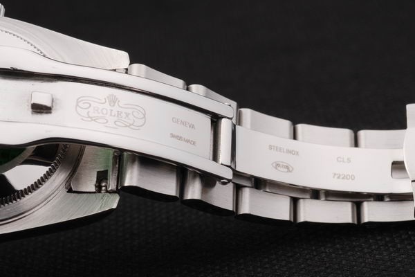 Back: Tryck in rostfritt stål tillbaka med grön Rolex klistermärke och markings