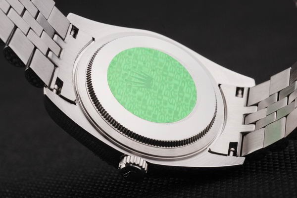 Back: Tryck in rostfritt stål tillbaka med grön Rolex klistermärke och markings
