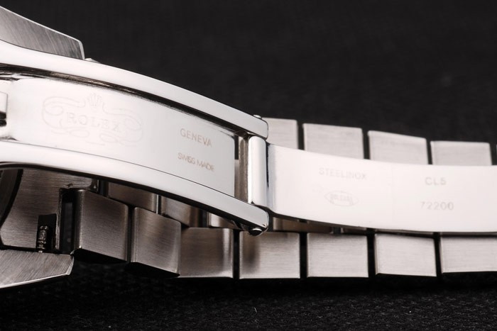 Back: Tryck in rostfritt stål tillbaka med grön Rolex klistermärke och markings