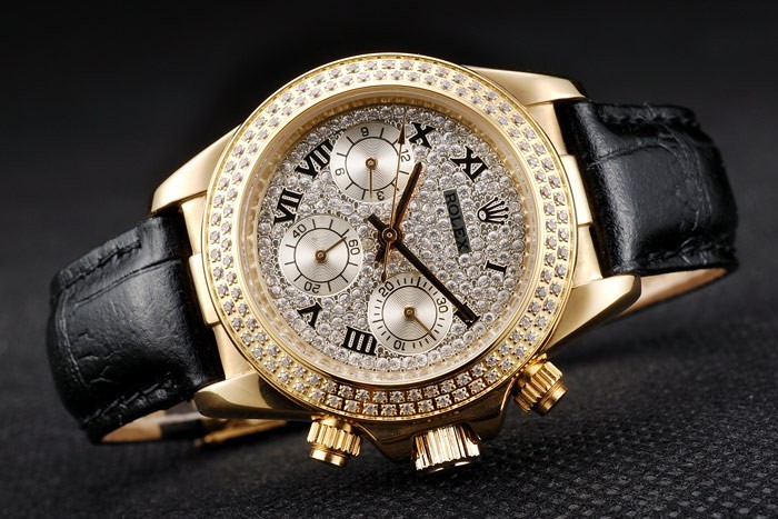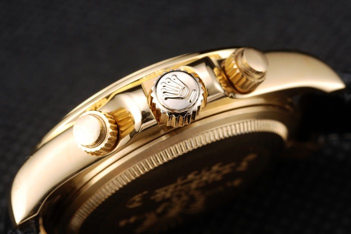 Crown: 18k gult guld cutwork krona med Rolex logotyp och två mindre cutwork tryckknapp kronor på ömse sidor om it
