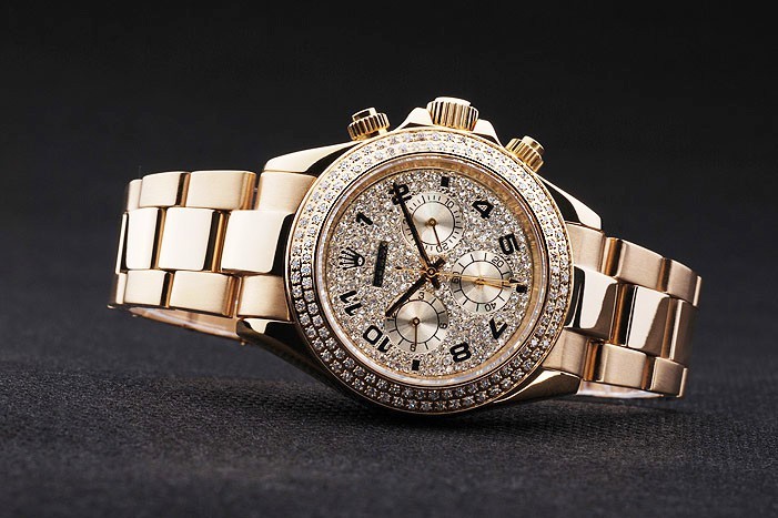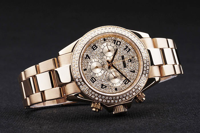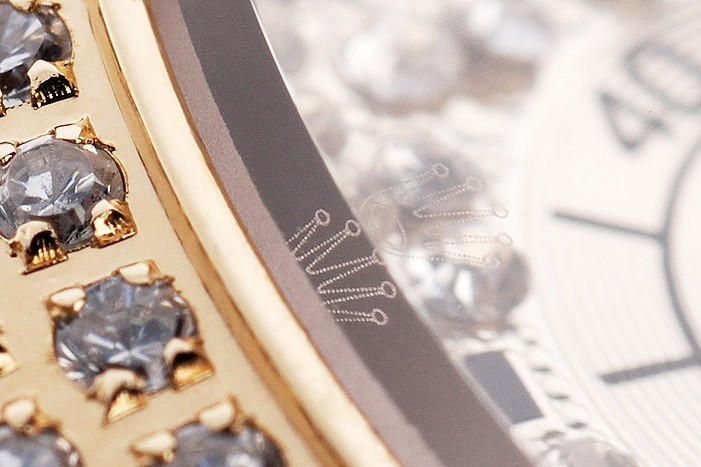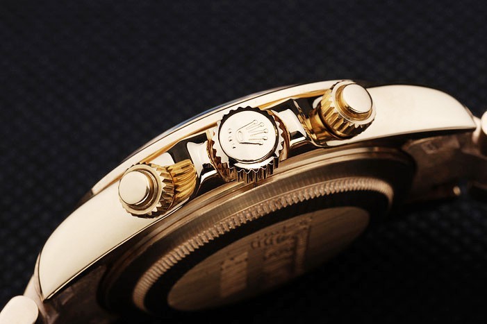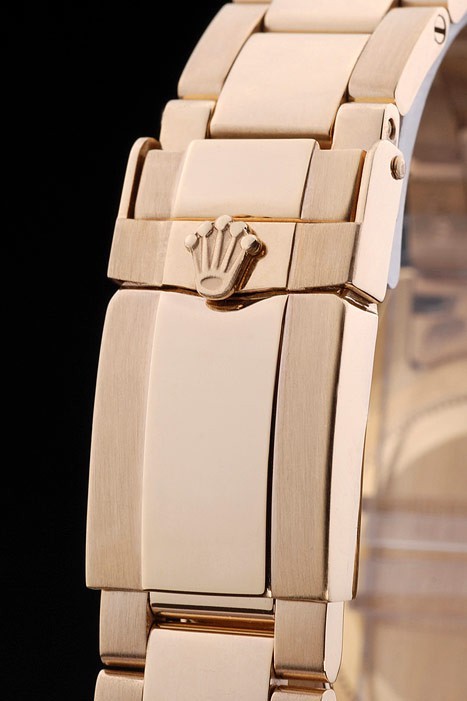 Crown: guld tonade cutwork krona med Rolex logotyp och ytterligare två kronor på ömse sidor om it