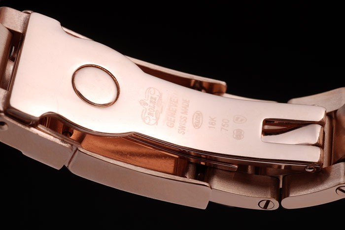 Bezel: 18k steg guld bezel med svarta enheter per timme marker