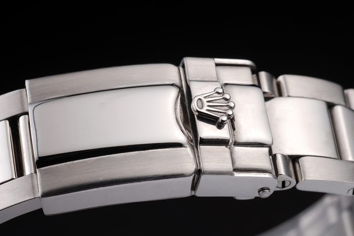 Bracelet: Borstad och polerat rostfritt länk stål armband med Rolex graverad utbyggnad lås visar Rolex logo