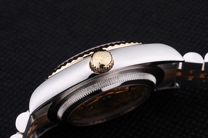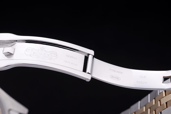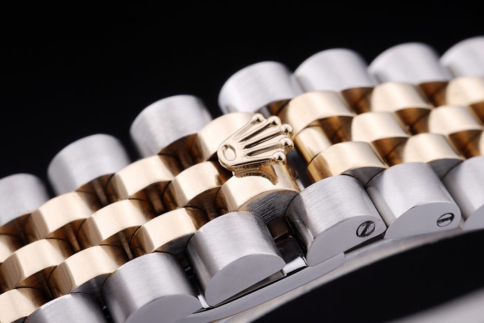 Bracelet: borstat rostfritt stål och gult guld länk armband med Rolex logotyp dold clasp