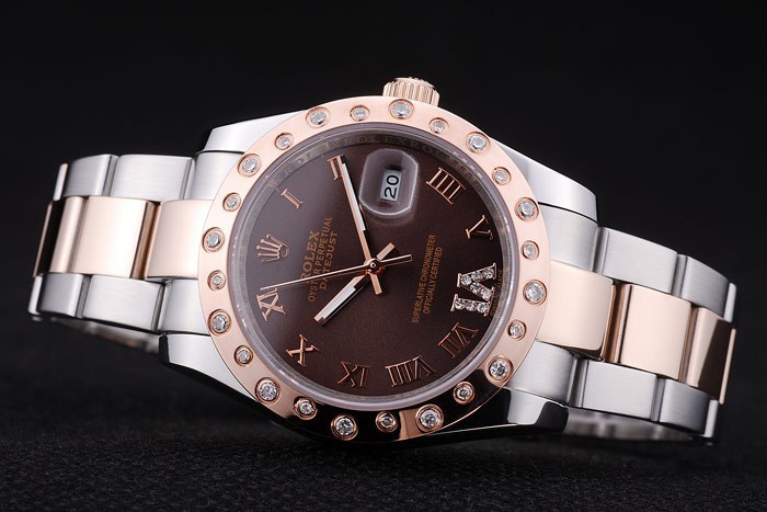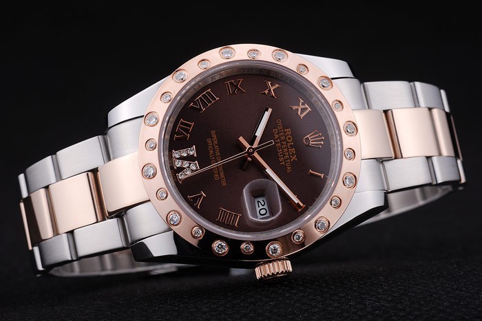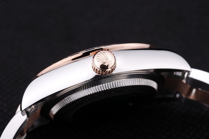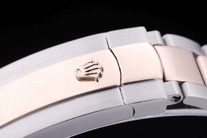 Bracelet: borstat rostfritt stål och rose-guld länk armband med Rolex logo driftsättning clasp