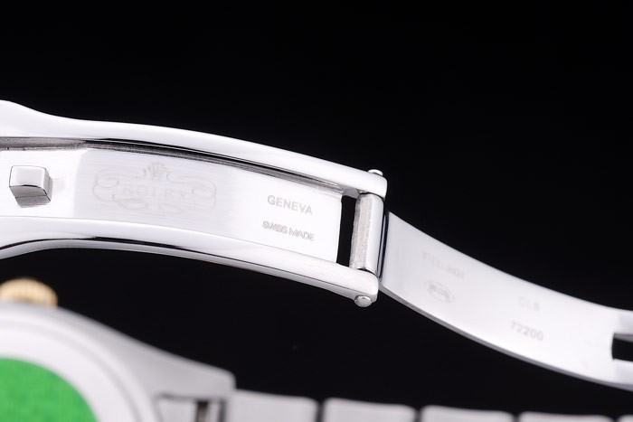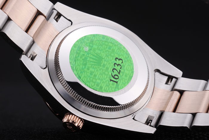 Tillbaka: Rostfritt stål snap-in tillbaka med grön Rolex äkthet sticker