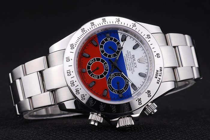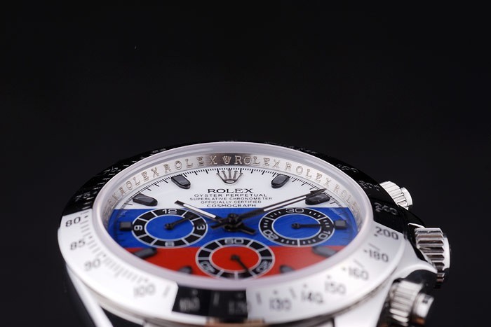 Crown: Polerat cutwork rostfritt stål krona med Rolex logotyp och två mindre cutwork knapp kronor på ömse sidor om it