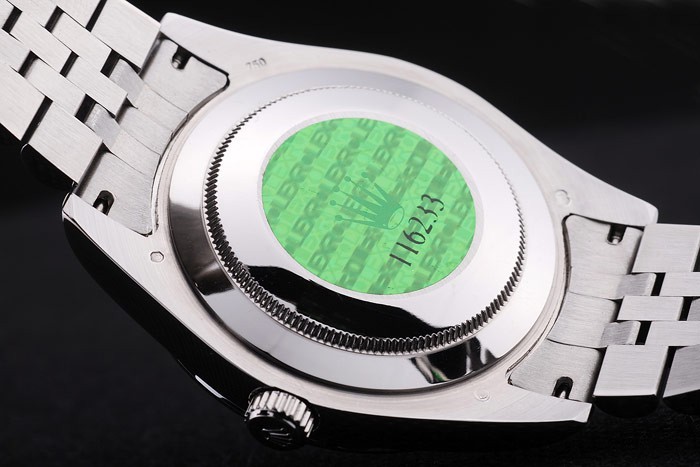 Tillbaka: Rostfritt stål snap-in tillbaka med grön Rolex äkthet sticker