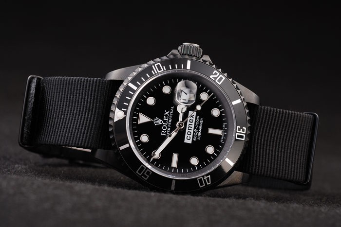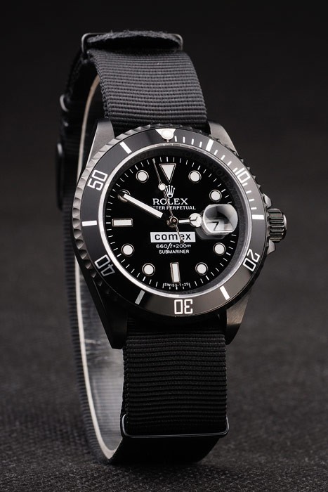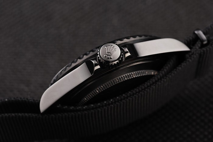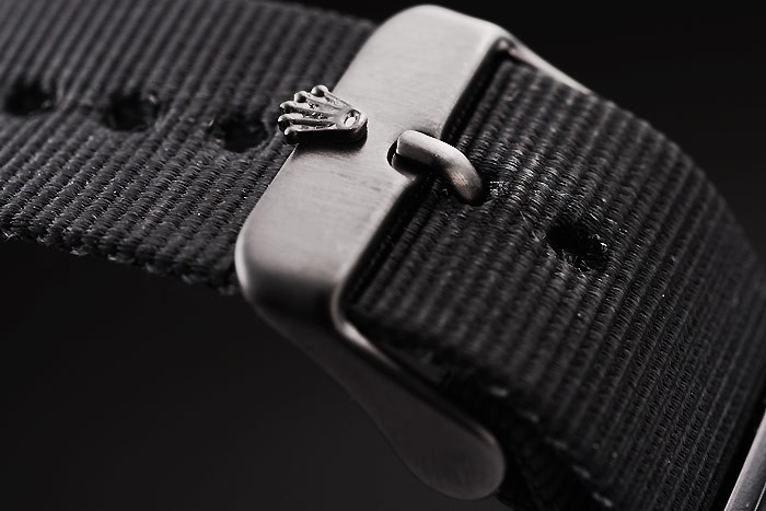 Bracelet: Svart tyg rem med Rolex logotyp ristade jon-klädd krok spänne spänne