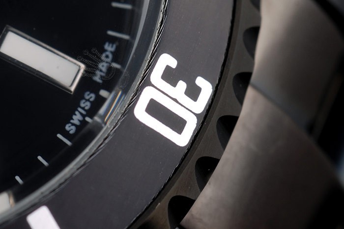 Bezel: Svart lackerad cutwork bezel med index och arabisk siffra minut markers