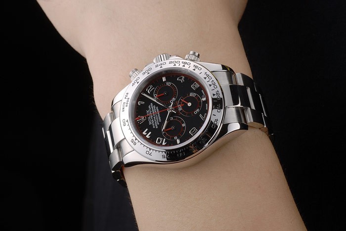 Schweiziska Rolex Daytona rostfritt stål armband Black Dial 80.296