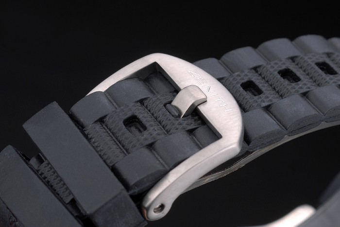 Bracelet: struktur svart gummi länk armband med krok spänne spänne och ”Zenith” inscription